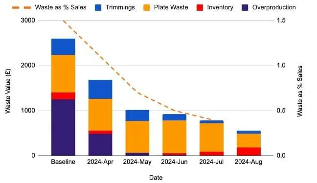 £14,000 (US19,000) saved per year – Reduced food purchasing costs.